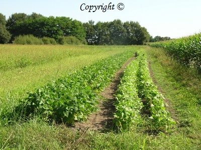 J'y produit des légumes et fruits de saison à partir de semences biologiques et ensuite plants repiqués, sur paillage ou pleine terre en semis direct, certaines cultures sur buttes permanentes